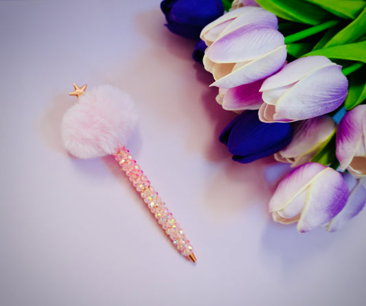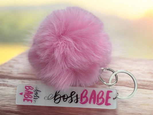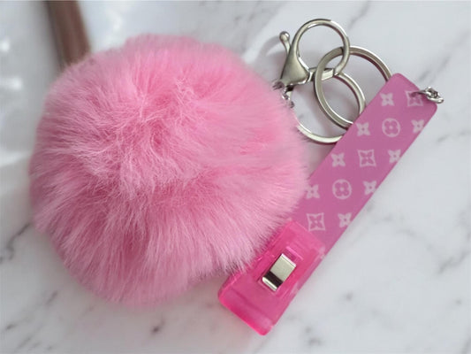 Card Holder Keychain in Pink Cotton Candy with Pink Pom Pom