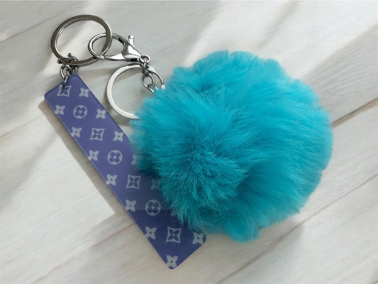 Card Holder Keychain in Blue Cotton Candy with Blue Pom Pom